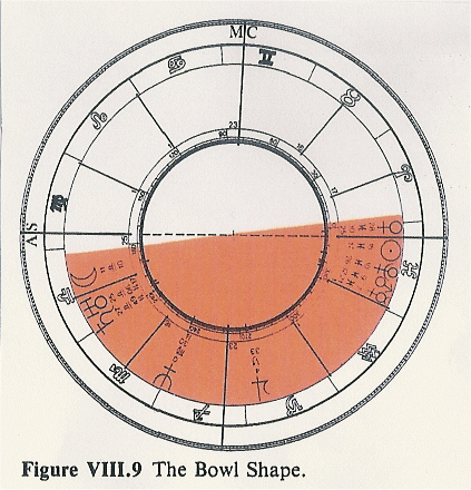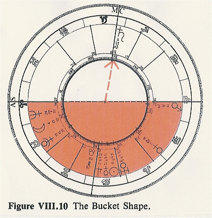 O "bucket shape", é na realidade um "bowl shape" com um planeta ou uma conjunção que está de fora e actua como "pega do balde".