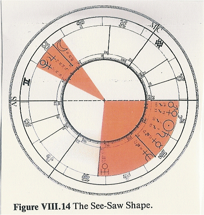 Devido à sua elevada concentração este padrão passa por ser algo tenso e vai-se manifestar fortemente a necessidade do indíviduo se confrontar com a parte da vida incluída nos 2/3 ausentes do horóscopo.